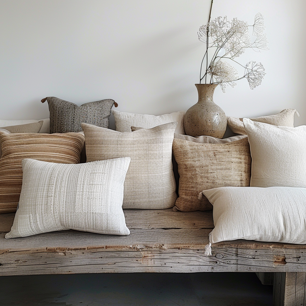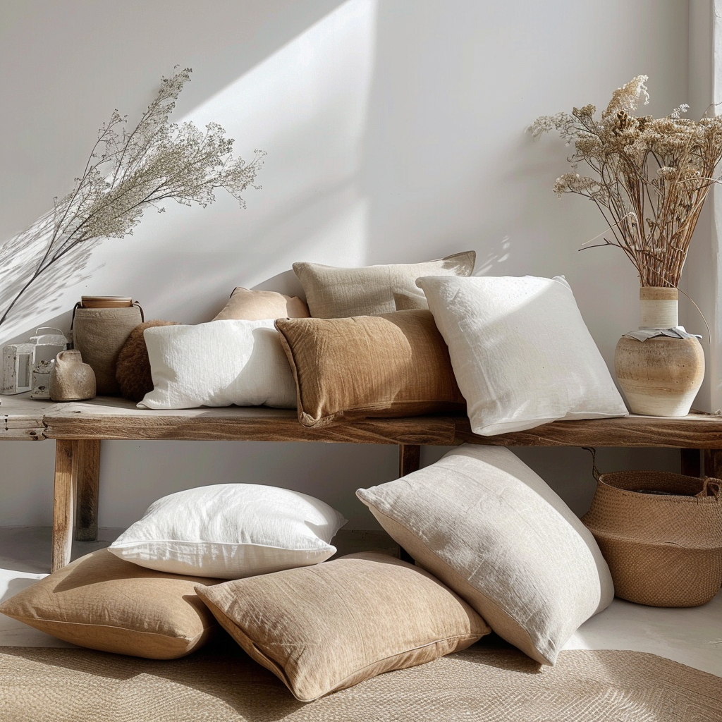 Aquí podrás encontrar cojines, mantas, plaids y alfombras de distintos colores y texturas. Elaborados de forma artesanal y con materiales naturales, como las fibras naturales, el algodón, el lino y la lana, estos textiles elevan tus espacios.