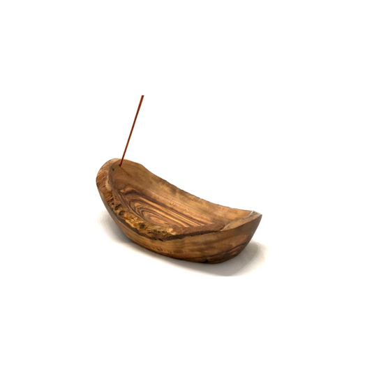 Porta Incienso Ovalado Artesanal - Madera de Olivo