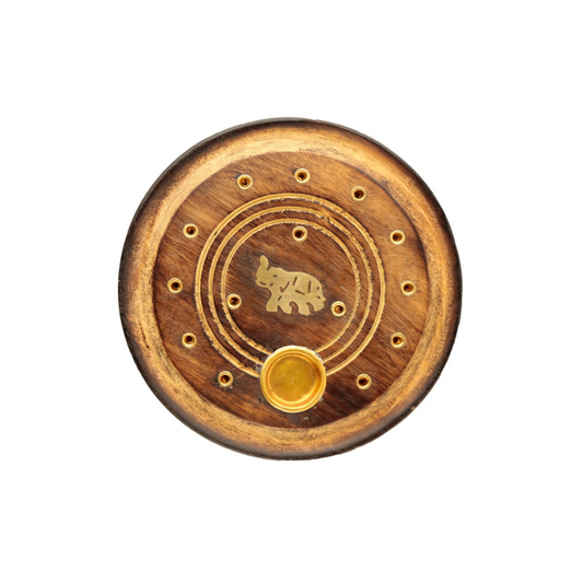 Quemador Porta Incienso Redondo de Madera de Mango - Elefante