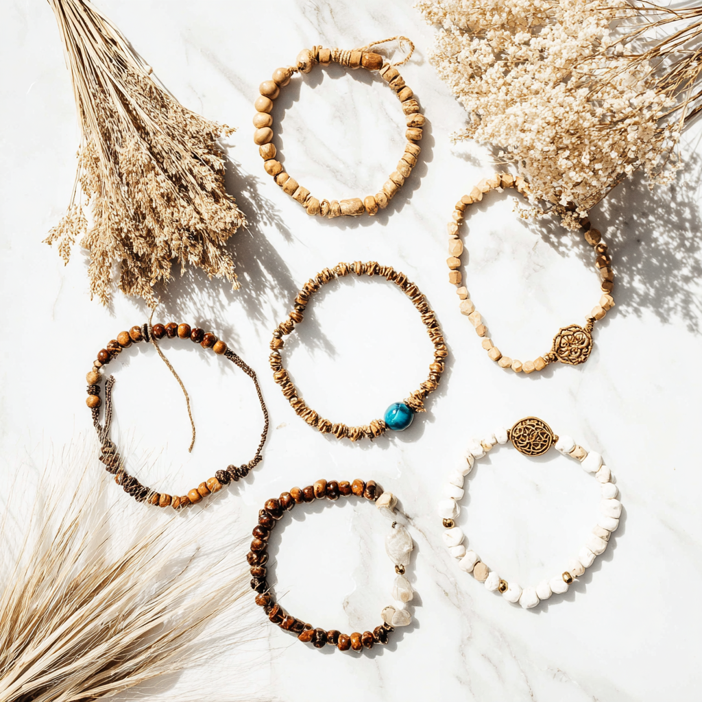 Pulseras llenas de carácter, naturales, artesanales y creadas para acompañarte cada día, en cada gesto, en cada versión de ti misma.